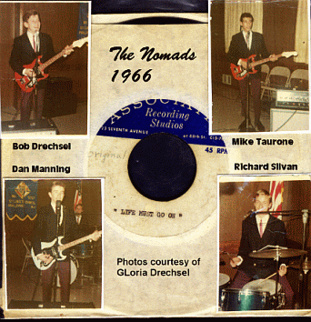 As time went by, I drifted my own way and formed my own band(s)> It wasn't until Joe Wetbach (a teacher at Waldwick HS) took an interest in the band, that things started to happen for them. He was responsible for the name change, and the band soon became THE NOMADS. Shortly afterwards, drummer Richard Silvan left the band, and was replace by two drummers and a keyboardist. This was Joe's idea for a new local "Super-Group".